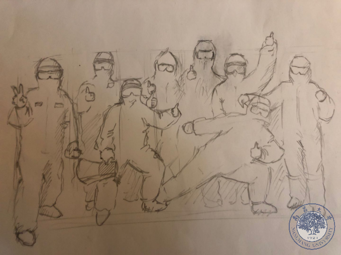 本网讯(附属人民医院)2月26日,在武汉战疫一线的附属人民医院罗佳收到闺蜜李盼发来的一组手绘简笔画,记录了她的战疫点滴。