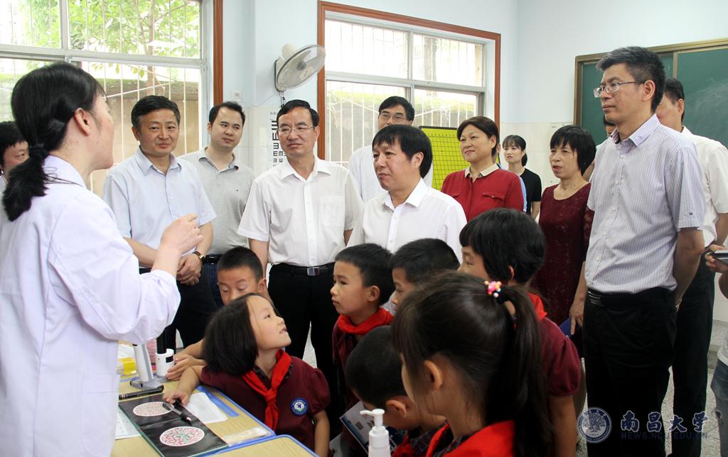 本网讯(记者段连青)6月6日上午,第23个全国“爱眼日”之际,江西省“科学防控近视、关爱孩子眼健康”眼科专家进校园活动在我校青山湖校区附属小学举行,副省长孙菊生到活动现场看望师生和医护人员。