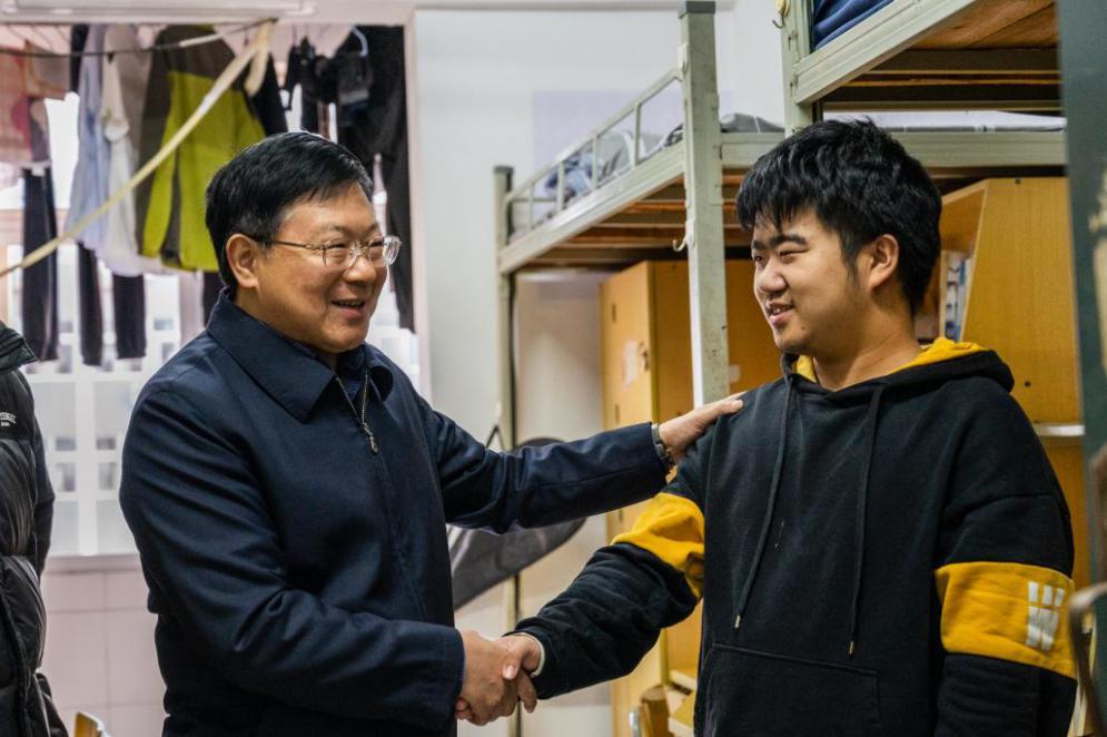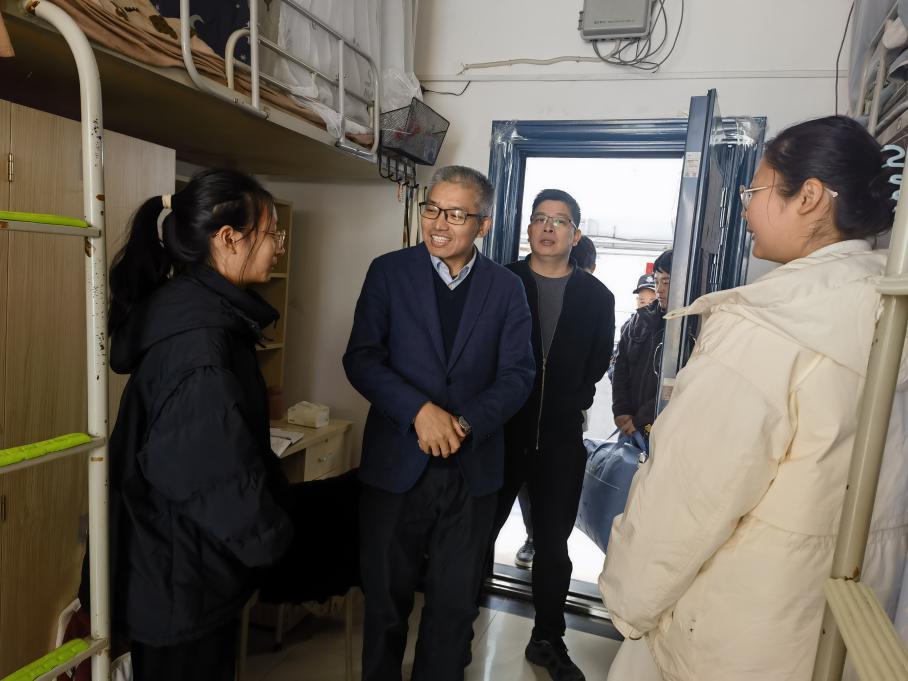 “进入大学三个月适应得怎么样?课程有没有什么困难?”“最近天气比较冷,注意保暖”“有什么困难和问题可以随时找我们的老师反映,学校很关心大家”。校领导每到一处,都与学生亲切交流,倾听学子心声,询问近期学习生活情况,并认真听取学子对校园及配套服务设施的意见建议,及时了解实际困难,现场解答相关问题。