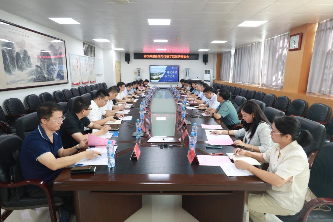 新闻与传播学院相关负责人汇报了部校共建工作。与会人员围绕健全部校共建机制、培养新闻传播人才、AI赋能新闻宣传、新闻理论与实践、国际化传播等方面开展交流研讨。