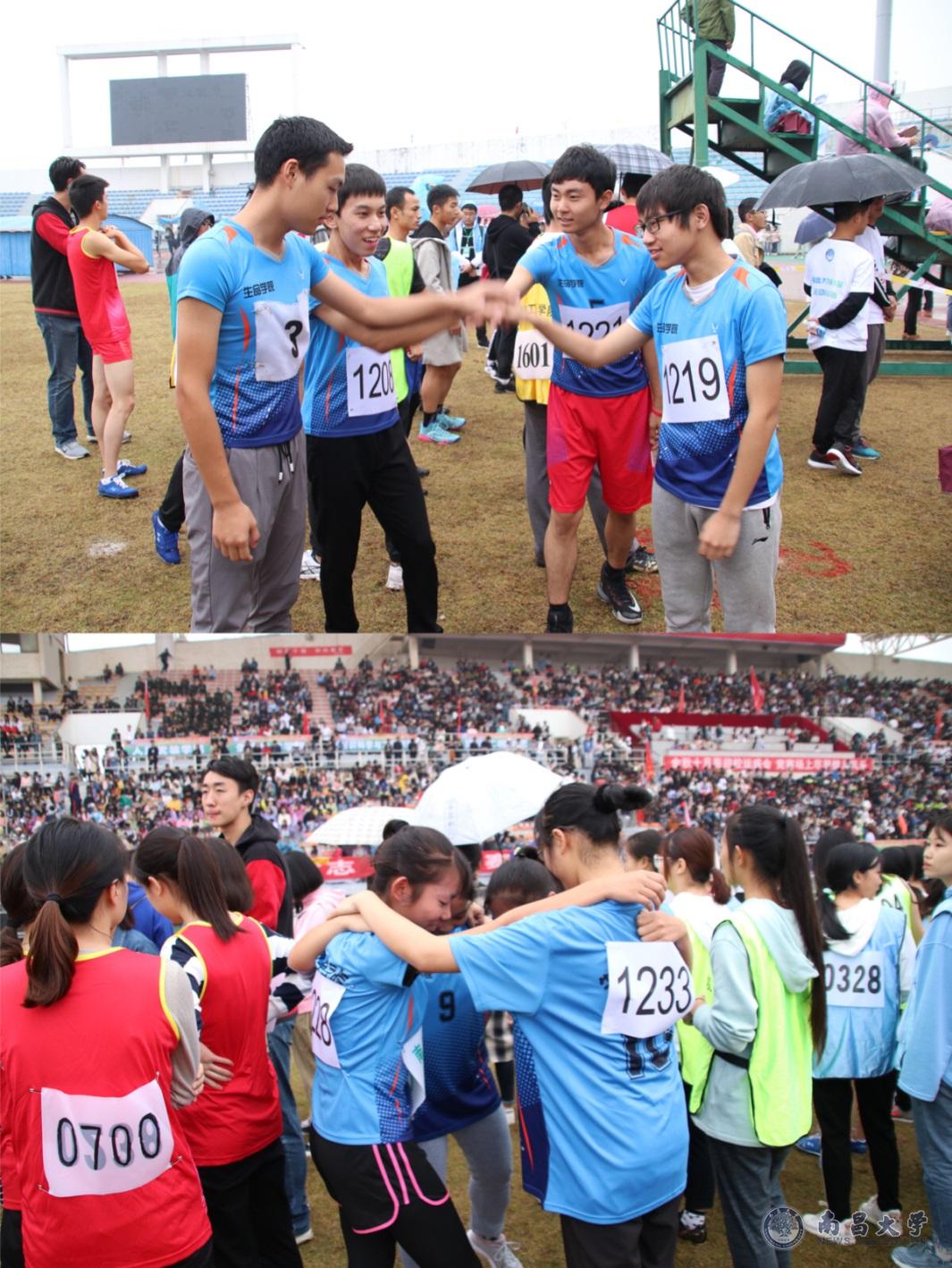 本网讯(学生记者徐子琪、李蓉)十月的天,阴晴不定,伴着绵绵细雨,校运会赛场下的呐喊、欢呼、拥抱、祝福也变得格外暖心,我们用镜头记录下一个个瞬间,拍下一张张正能量的照片,为选手加油也为看台上下的观众点赞。