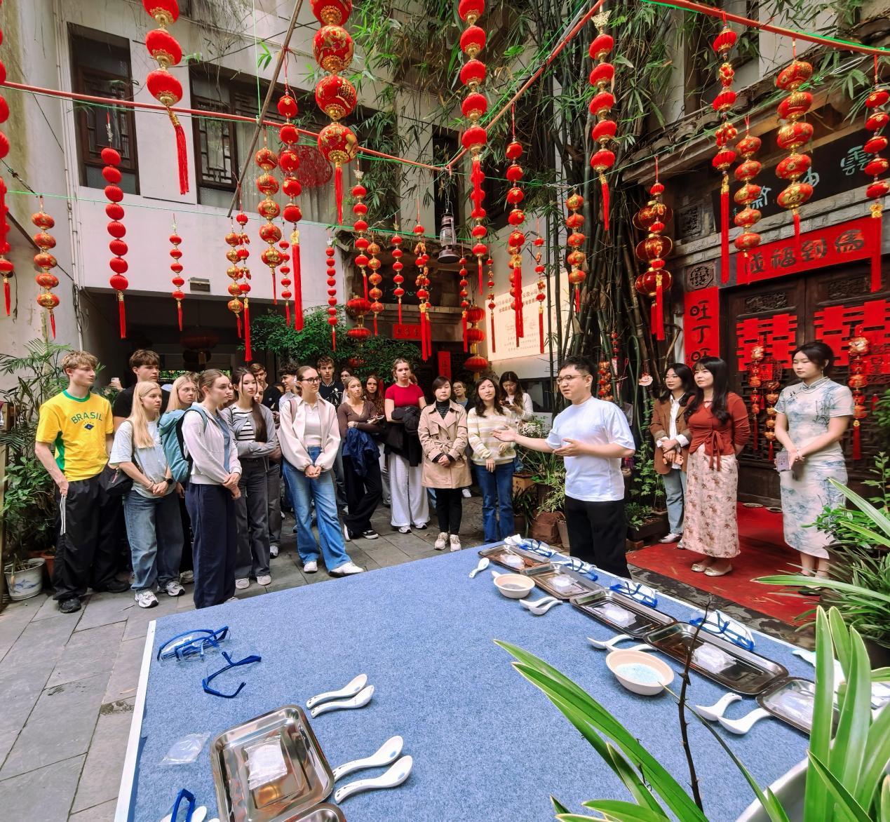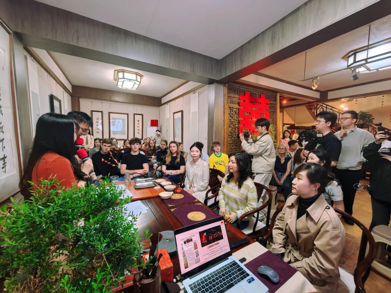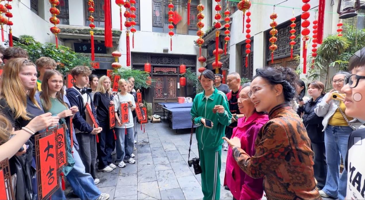 德国师生们一进门,便被这座典型的中国传统院落深深吸引。春日的阳光洒进院落,青砖灰瓦,灯笼摇曳,竹影婆娑,鸟语花香,听着年轻一代院主人方天川、汪冰逸娓娓道来,他们这个家族如何致力于美好家风的实体传承、如何通过举办读书会探索基层治理的创新实践,并以家庭为窗,尝试搭建国际文明的对话平台,让世界看见一个可亲、可敬、可爱的中国。