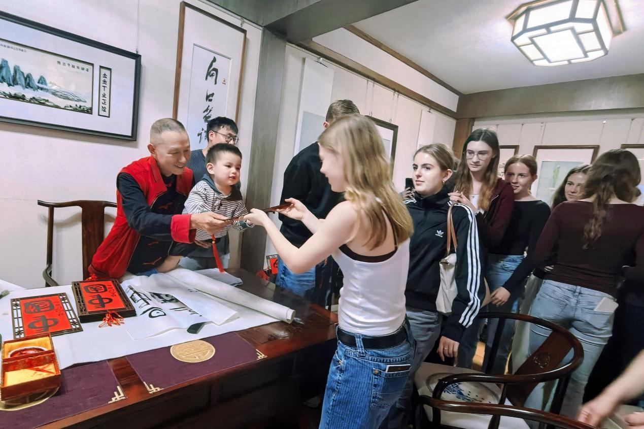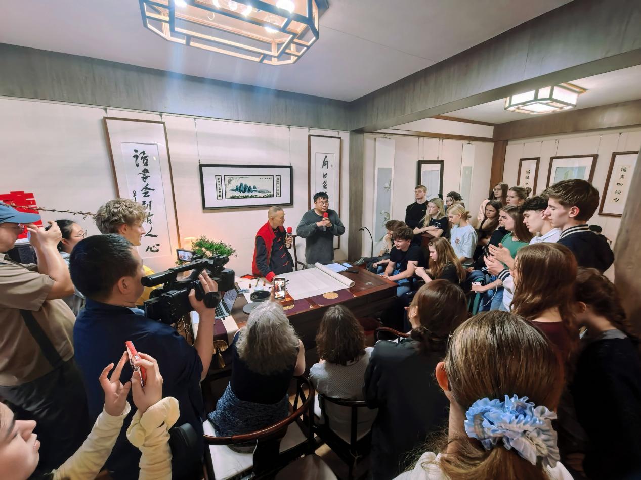 “中国汉字不止是写字,更是一种精神寄托。一个‘福’字,藏着中国人对美好生活的全部想象。”方云边讲解边挥毫,一个饱满的“福”字跃然纸上,德国师生们纷纷点头鼓掌,举起手机记录。