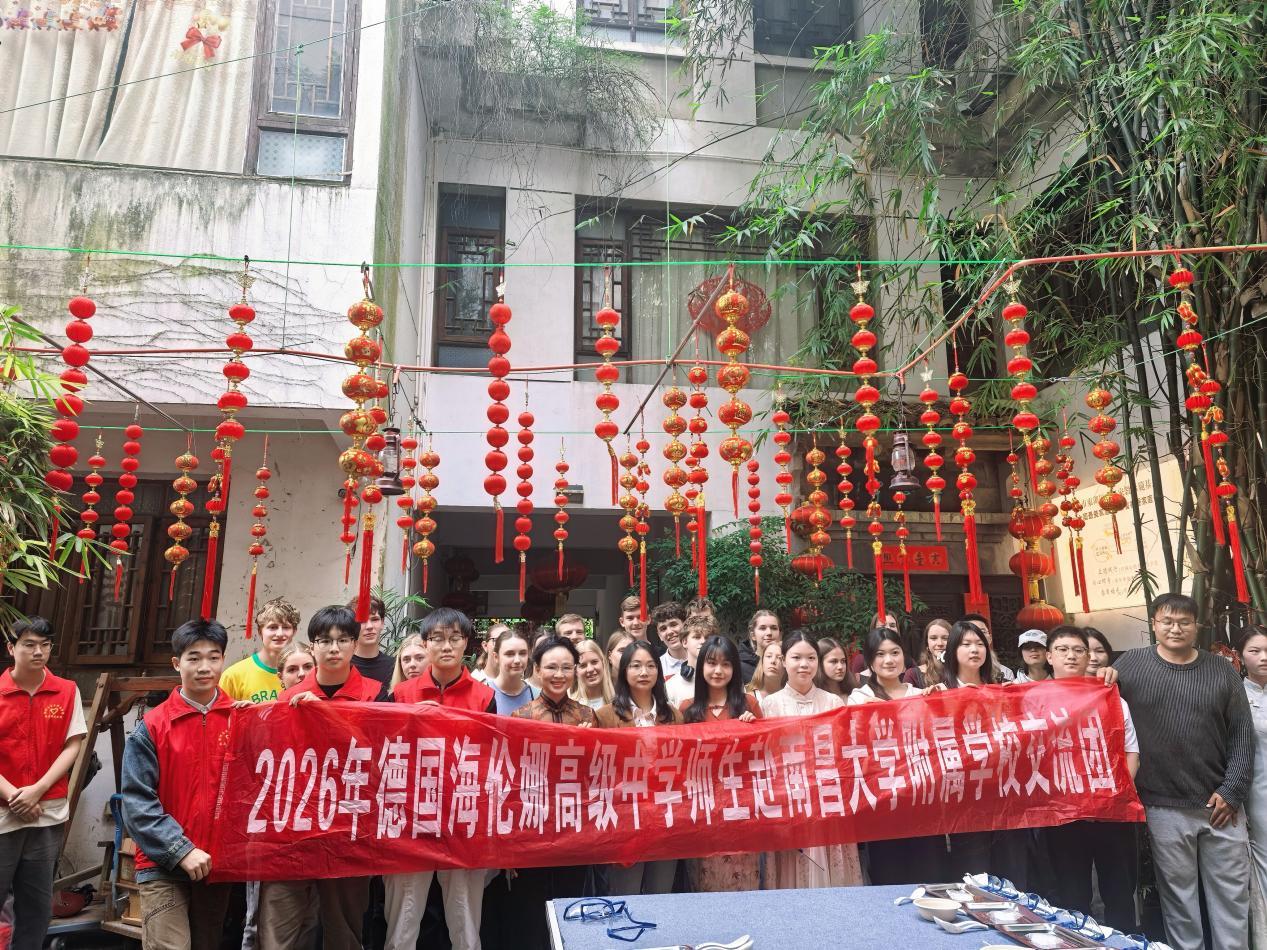 本网讯(南昌大学附属学校)江西省南昌东湖区青山南路343号,是一幢仿明清赣派风格的古朴四合院江西四方家。门口一副对联写着:“四方雅集圣贤语,一院书香满庭芳”。这里是全国最美家庭方云家庭及其五兄弟家人居住的地方,也是南昌大学四方艺术研究院所在地。4月17日下午,这片书香墨韵的四合院,迎来了一批特殊的客人,来自南昌大学附属学校的友好学校——德国海伦堡高级中学的25位师生代表。