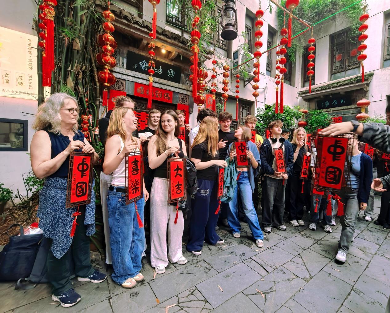 从中德师生兴致勃勃打铁花的星火,到85岁老人手中的红穗;从两岁小朋友天真烂漫送出的福卡,到德国朋友离开时的依依不舍——这场春日下午的读书会,让科学原理与东方美学在同一个时空里碰撞交融,让中德青少年的友谊在书香墨韵中生根发芽。
