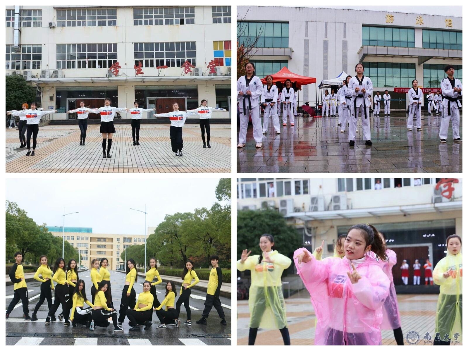 一食堂、游泳馆和仲尼路的助威表演