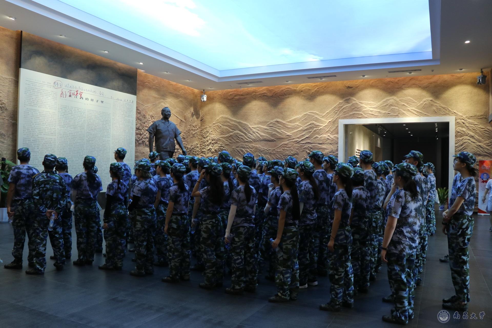本网讯(学生记者陈欣桐、巢子怡)8月29日上午,我校684名学长小教员们身着军装、头顶烈日,走“小平小道”,参观小平小道陈列馆,切实感受红土地的红色文化内涵和改革开放的思想历程。