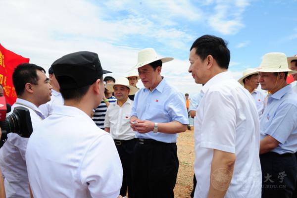 7月8日上午,省长刘奇深入鄱阳县饶丰镇、莲湖乡、余干县瑞洪镇、南昌县泾口乡抗洪一线视察和现场指导防汛抗洪工作,并亲切看望和慰问了一附院医疗卫生应急队队员。省卫生计生委主任丁晓群陪同视察。