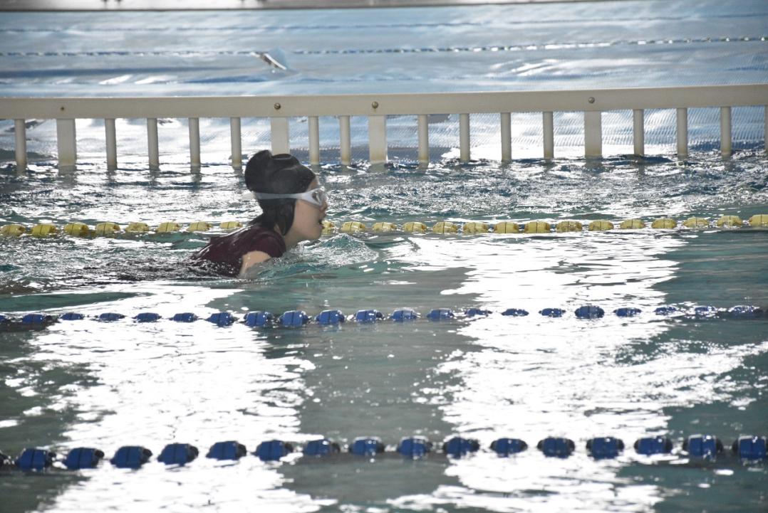 脚步蹬出,穿梭自如。水面上,涟漪阵阵,他们如鱼一般自在游动,稳定前行。临近终点,他们奋力冲刺,游动的身姿喷薄着青春的活力,激扬的水花彰显坚定的信念。