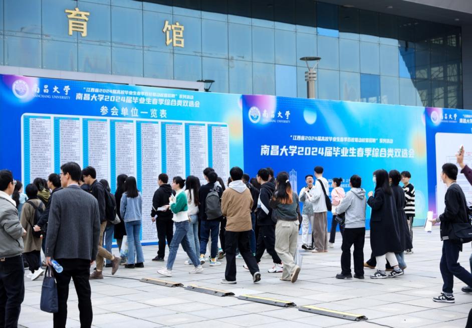 本网讯(通讯员 李静、丁天,学生记者王双瑜)3月23日上午,南昌大学2024届毕业生春季综合类双选会在前湖校区室内体育馆举行。此次双选会吸引了近430家优质企事业单位参与,其中,世界500强企业60余家,国有企业、机关事业单位100余家,上市公司100余家。提供就业岗位1600余个,需求人数达1.9万余人。