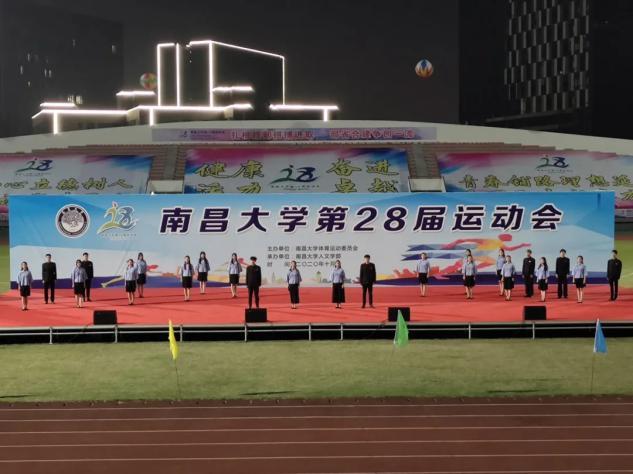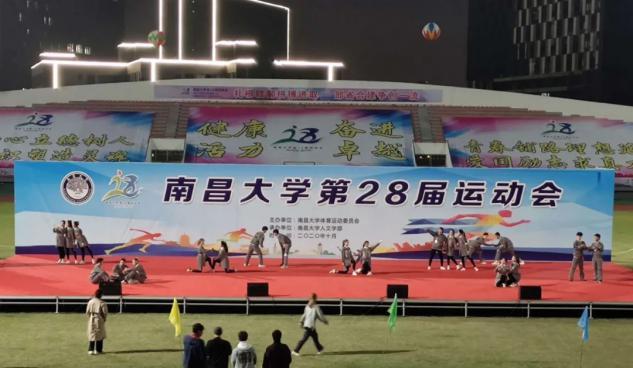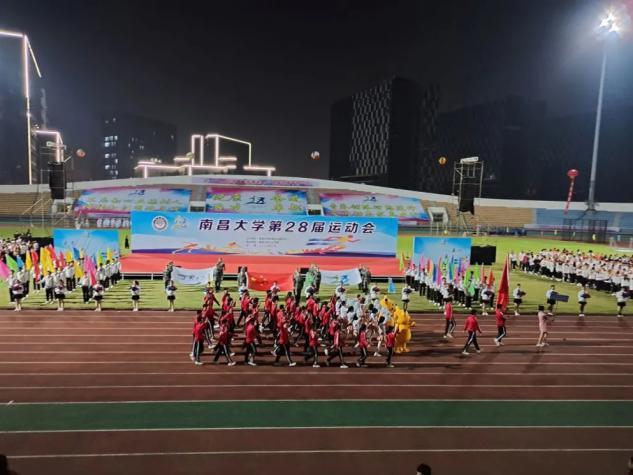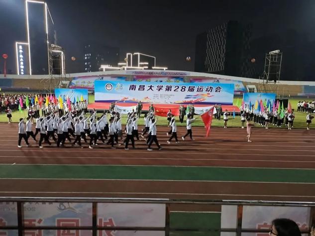 深秋的南昌,傍晚7点就已笼罩在暮色当中。夜色渐深,气温转凉,田径场内外却是一片火热。巨大的校运会展示牌竖立在体育馆门口,场馆上空旗帜在晚风中高高飘扬,它们仿佛在向过往的行人们宣告——南昌大学第28届运动会来了!