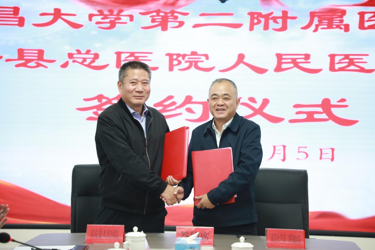 现场,二附院党委委员、副院长吴利东与乐安县人民医院院长王晓明共同签署学科建设意向合作协议,为今后学科共建与技术协同奠定坚实基础。