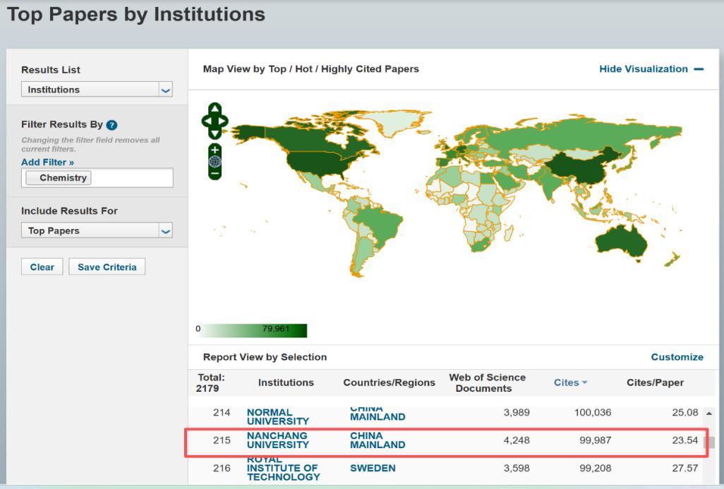 本网讯(化学化工学院)近日,最新ESI(基本科学指标)统计数据显示,我校化学学科ESI排名为0.987‰,进入全球前1‰行列,取得新突破。
