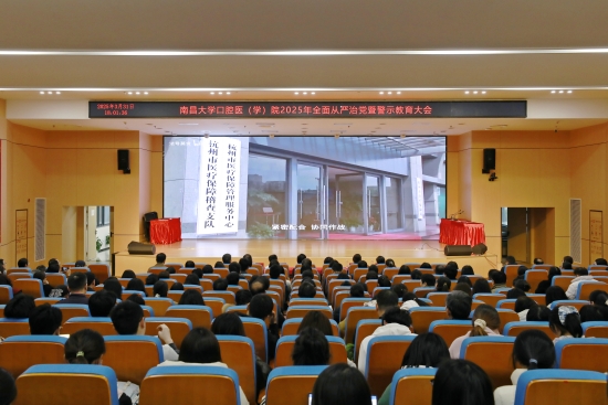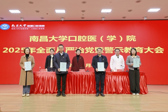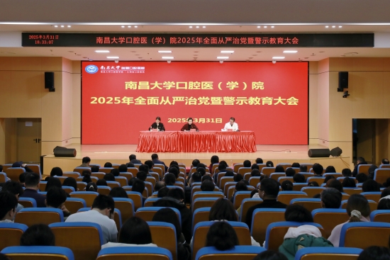 本网讯(口腔医学院 陈弦)3月31日,口腔医(学)院召开2025年全面从严治党暨警示教育大会,深入学习贯彻党的二十大和二十届二中、三中全会精神及习近平总书记在二十届中央纪委四次全会上的重要讲话精神,认真贯彻省纪委十五届五次全会精神以及南昌大学、省卫健委2025年全面从严治党工作会议精神,全面总结2024年医院全面从严治党工作,部署2025年全面从严治党重点任务。院党委书记周婷出席会议并讲话,院纪委书记乐晟霁作党风廉政建设和反腐败工作报告。院党委副书记、院长杨健主持会议。