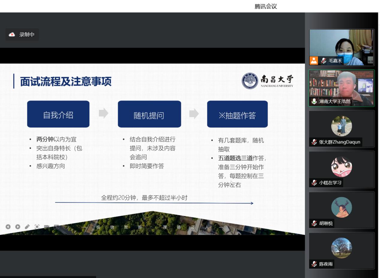 本网讯(外国语学院 毛嘉禾)为给考研学生提供全方位的指导,外国语学院充分调动院内外各种资源优势,帮助学生提升复试成功率,3月25日晚上7点,外国语学院召开2022届毕业生考研复试线上指导会,做好疫情防控期间毕业生升学工作。外国语学院陈夜雨院长、张大群老师、米保富老师、本科毕业班辅导员毛嘉禾老师、2021届毕业生肖婷、张惠兰、王浩然和2022届备考研究生复试50余名同学参加本次会议。