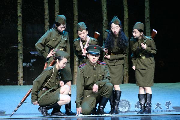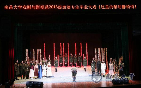 本网讯(学生记者施吉娜、杜翔)12月28日、29日晚,我校艺术与设计学院2015级戏剧与影视系表演专业第二场毕业大戏《这里的黎明静悄悄》在音乐厅开演。