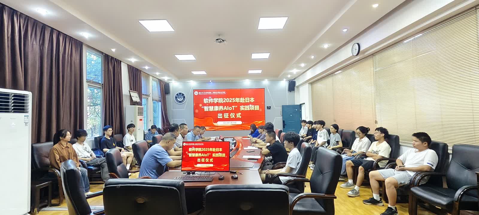 本网讯(邹运英)9月26日,南昌大学软件学院2025年赴日本“智慧康养AIoT”实践项目出征仪式在软件楼222室顺利举行。学院党委书记余克弟、党委委员梅纲出席仪式并致辞,仪式由罗铭副院长主持。