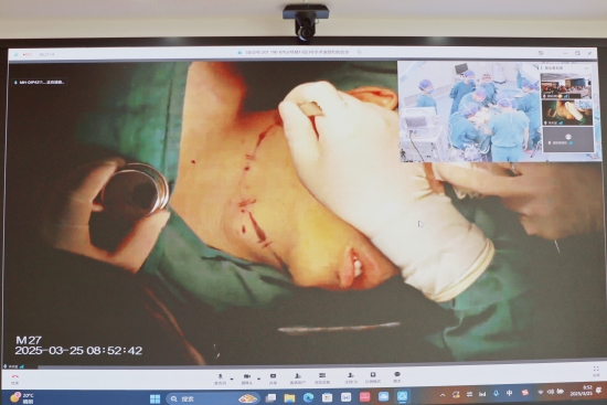 3月25日上午,张志愿院士团队抵达红谷滩院区后,立即深入临床一线开展手术示教,为一位患右侧腮腺恶性肿瘤合并有糖尿病史的患者进行手术。