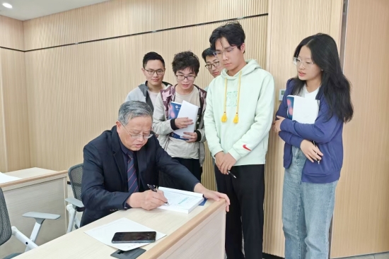 授课尾声,张志愿来到青年学子之中,与大家亲切交流。学生们手持书本争相提问,从临床实践困惑到职业价值思考,从跨学科研究方向到人文素养培育,问题络绎不绝。张志愿耐心解答,并接过学生们递来的书本,在扉页挥笔写下“百舸争流,齐头并进”等箴言。