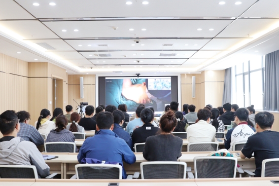 手术通过5G网络同步直播至示教室,由副院长习伟宏带领百余名口腔医学生实时观摩。学生们紧盯直播屏,屏息凝神观摩手术操作,时而低声探讨。