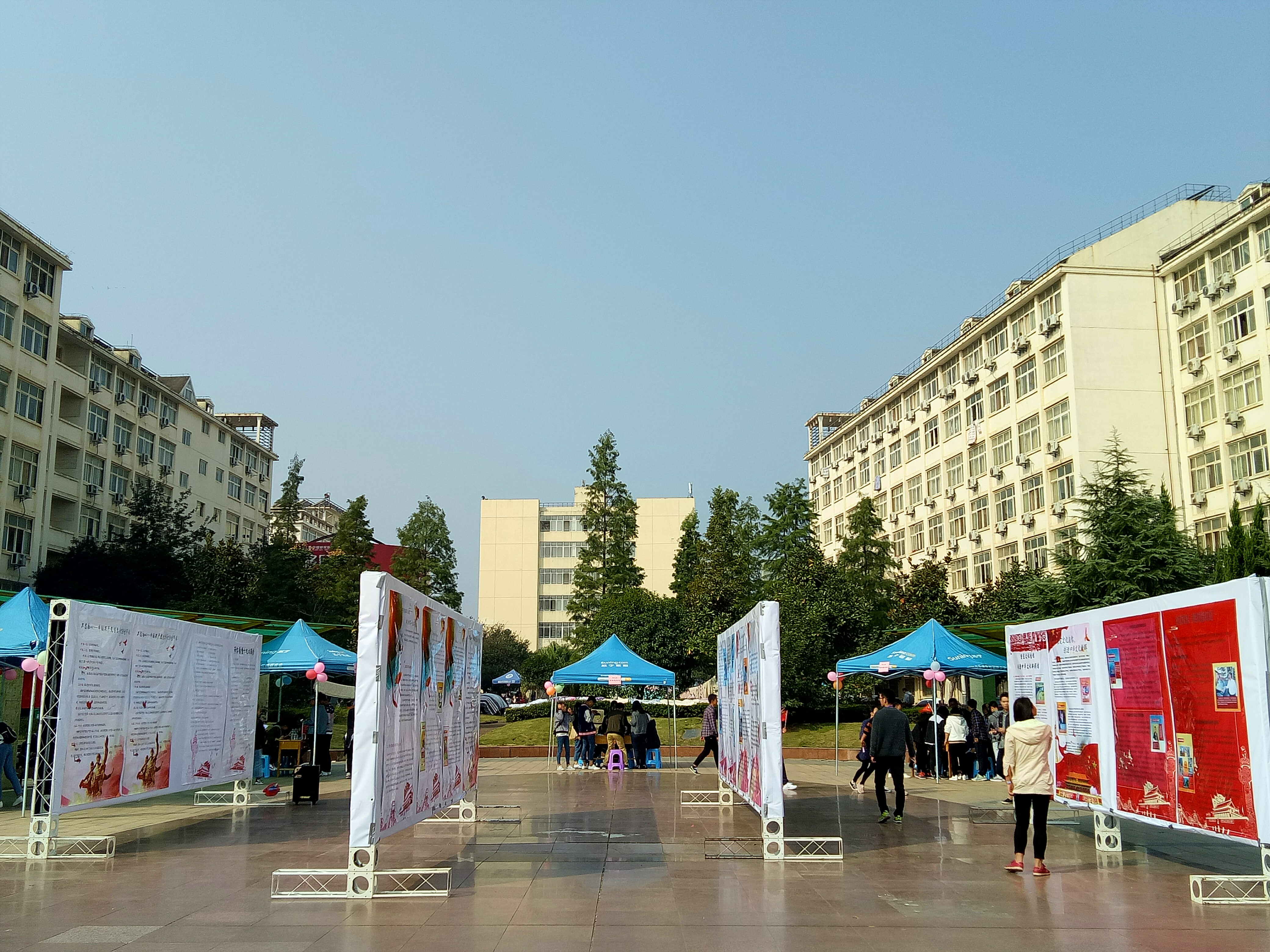 宣展会由“新中国发展光辉历程”、“中国砥砺奋进的五年”、“解读十九大报告”等部分构成,系统展示了日益强大、愈加自信的祖国。在打卡闯关游戏以及纪念区留言合影环节,学生们进一步巩固了所学习的理论知识,表达了对祖国的情感。