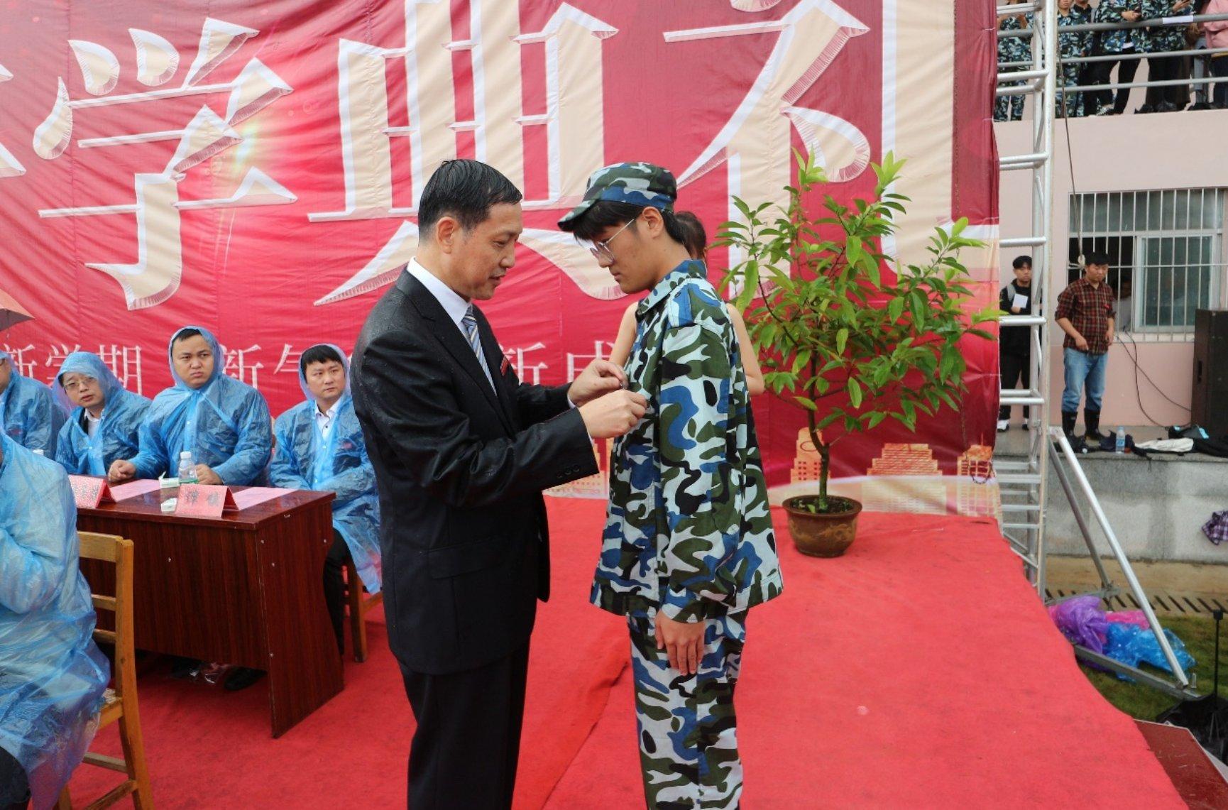 校党委委员、院党委书记刘继荣为新生代表佩戴校徽。一枚校徽,代表着“共院人”的身份,承载着共青学院团结勤奋、求实创新的精神。开学典礼首次为共院学子佩戴校徽,既是学院使命与荣光的交付,也是他们责任与担当的证言。