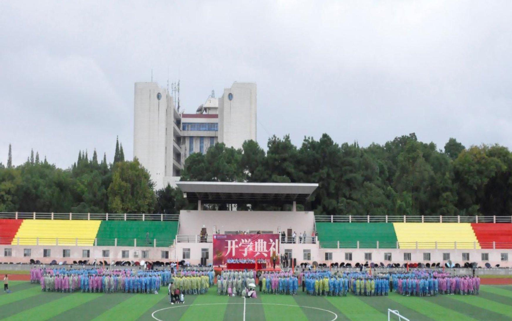 9月29日上午,共青学院2020级新生开学典礼暨军训汇演在体育场举行。在家院领导和师生代表共同见证了此次典礼。典礼仪式由学院党委委员、副院长彭斌主持。