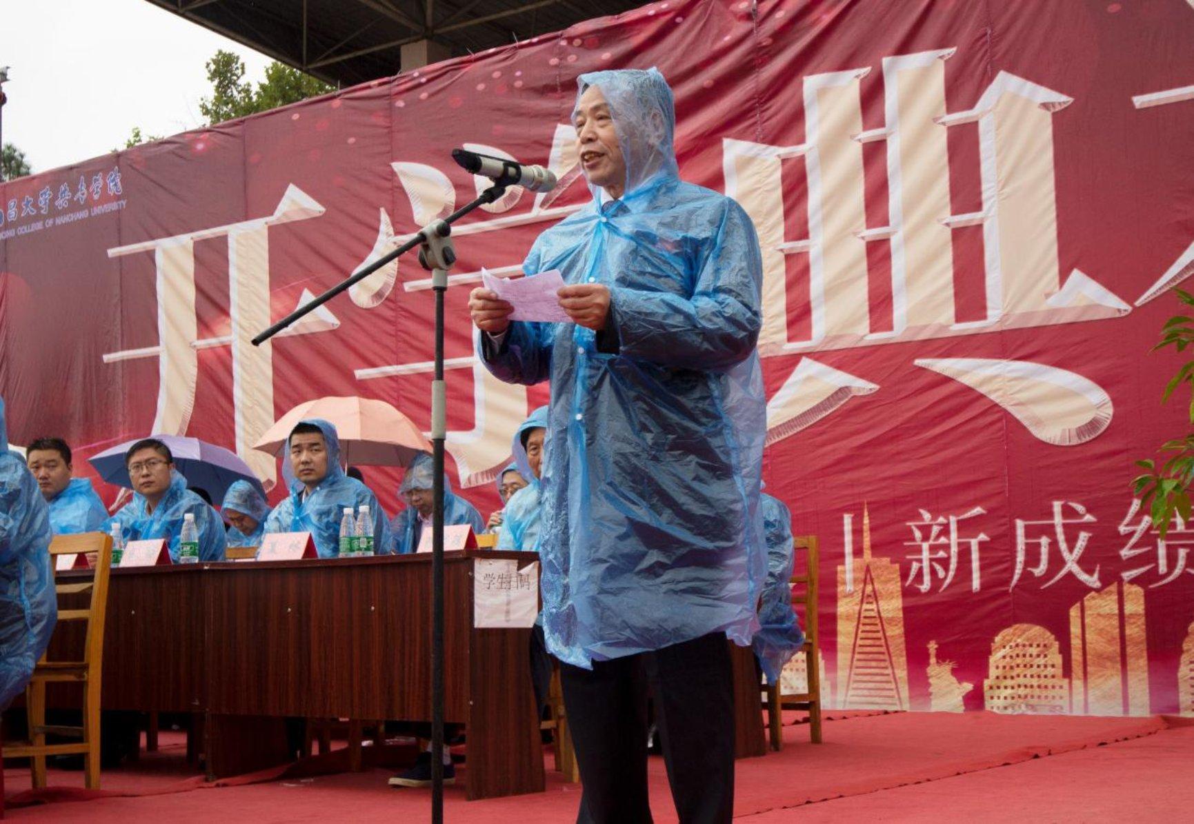 教师代表秦斌在发言中勉励同学们要扎扎实实学好理论基础,提升专业技能,在大学这个舞台展现自己绚烂的青春。