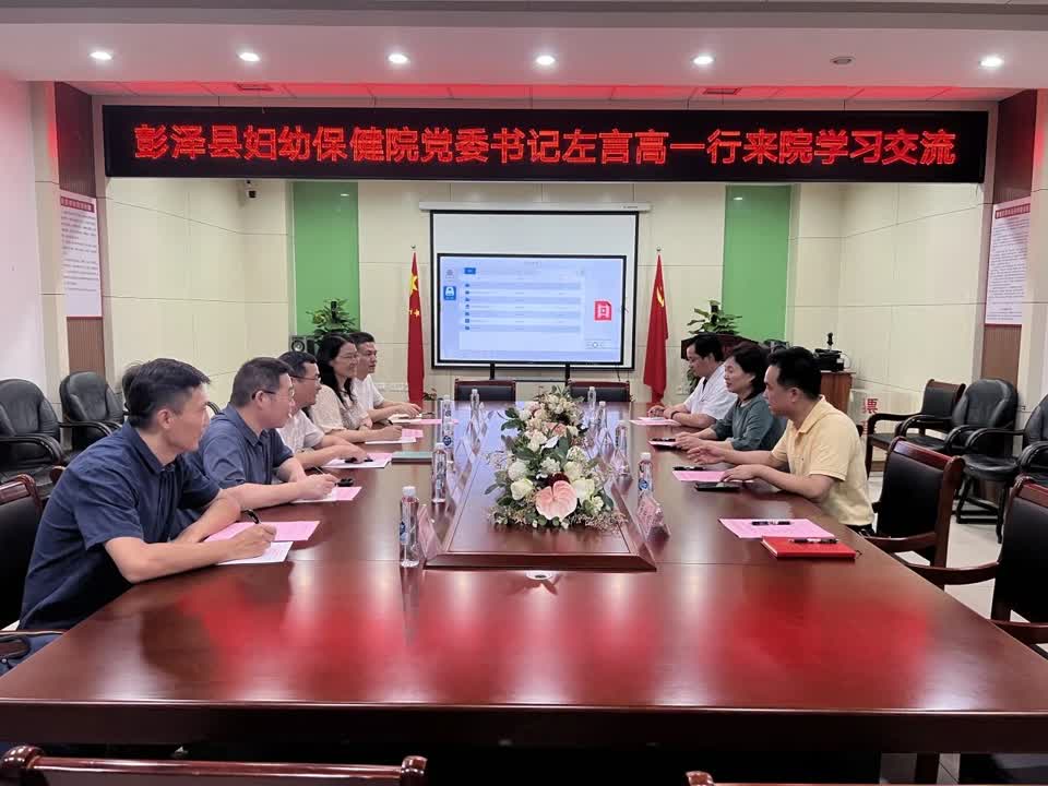 本网讯(第一附属医院)6月18日,彭泽县妇幼保健院党委书记左言高一行来我校一附院参观学习。一附院党委书记程志红、副院长曹凯、相关职能科室和临床科室参加了座谈交流会。