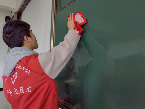 “我愿永远做一个螺丝钉”,传承螺丝钉精神,以弘扬新时代雷锋精神,学院青年志愿者协会带领志愿者们前往学院明德楼开展“文明之风 从我做起”志愿服务活动。活动开始,由协会大三成员李军在明德楼南楼进行活动动员。随后,志愿者们前往所要清理的教室开始清洁活动,清洁过程中,志愿者们撸起袖子,拿起抹布,将教室的黑板、黑板擦上的灰尘擦拭干净,仔细清理讲台、抽屉里的垃圾,以实际行动践行雷锋精神,诠释奉献之美。