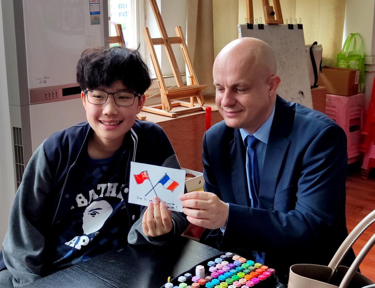 23日上午,访问团一行首先参观了我校附属中学。费奕一行听取了附属中学校长黄海啸对附中办学情况的介绍,观摩了心理咨询室、舞蹈课程、合唱课程以及美术课程。在之后的座谈会上,附属中学与访问团就与法国中小学校建立姐妹学校,进行合作交流,赴法国研学和留学等方面进行了坦诚地交流。黄海啸表示,欢迎更多法国中小学生来校交流,了解熟悉中国文化和教育,欢迎更多专家学者来我校访问、授课访学。费奕表示,学校精彩绝伦的课程和附中学子们表现出的国际对话力、理解力、沟通力和竞争力给他留下了深刻印象,将支持和推动我校与法国学校之间的教育交流合作,诚挚邀请我校师生参加中法文化之春、中法音乐节等文化交流活动。