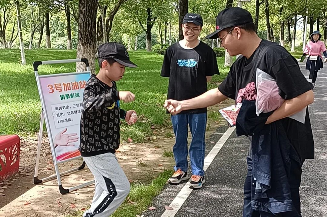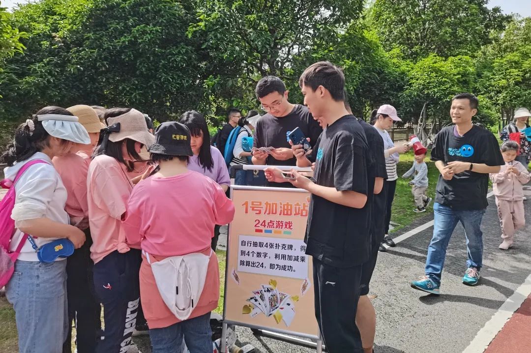 比赛途中还设置了24点游戏、托乒乓球、猜拳、你比划我来猜等4个游戏加油站和补水站。大家一路欢声笑语,让畅快的汗水挥洒在春日的阳光里。