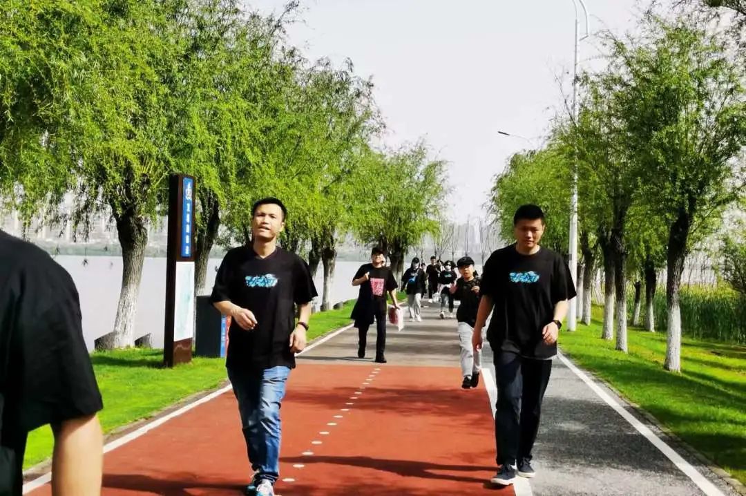 上午9点,活动正式开始,大家精神饱满、步伐轻松矫健,沿着柳树成荫的湖边步道,呼吸着春天清新的空气,畅谈美好的生活。