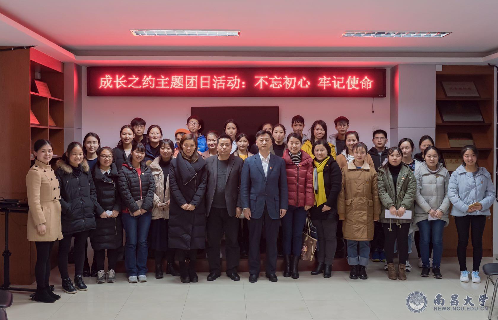 本网讯(外国语学院)12月28日,团省委党组书记、团省委书记马健来到南昌大学,参加南昌大学外国语学院英语161团支部“不忘初心,牢记使命”系列主题团日活动。团日活动在学生公寓7栋青年成长活动室举行。