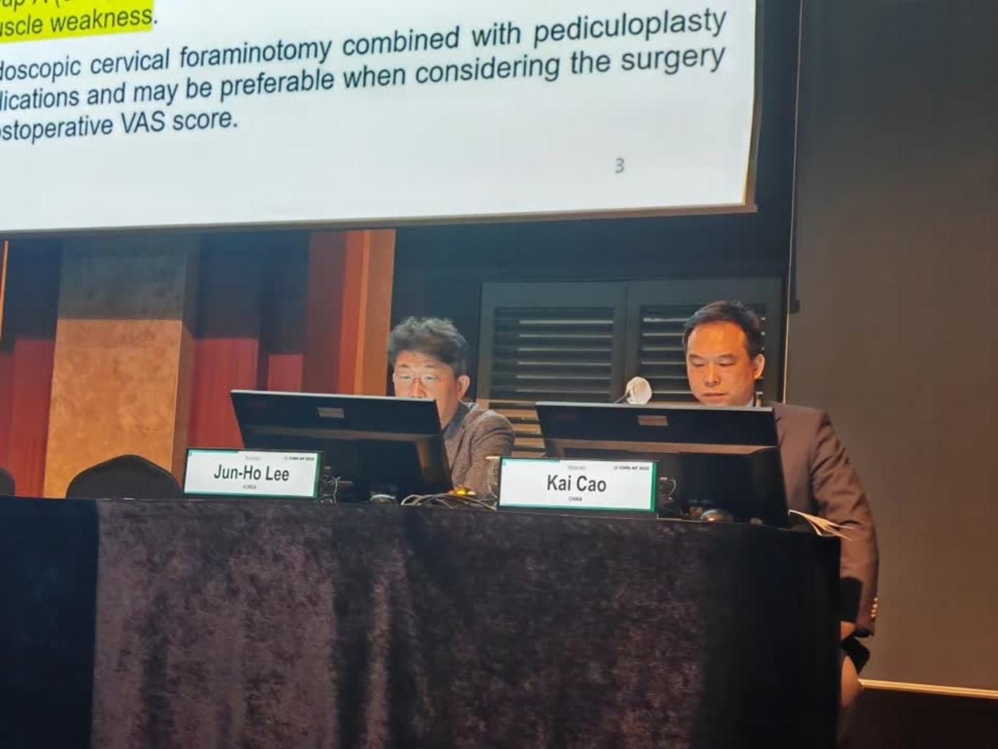 会议期间,曹凯教授团队还以《颈椎后凸畸形矫形术后全脊柱序列重建与患者生活质量改善的相关性研究》为题,进行大会发言,通过研究揭示了颈椎后凸畸形矫形手术应重视脊柱序列的重建。会后,曹凯教授接受了韩国脊柱外科学会(Korean Spine Society,KSS)的邀请,表示未来将与韩国脊柱外科展开进一步的深入交流。