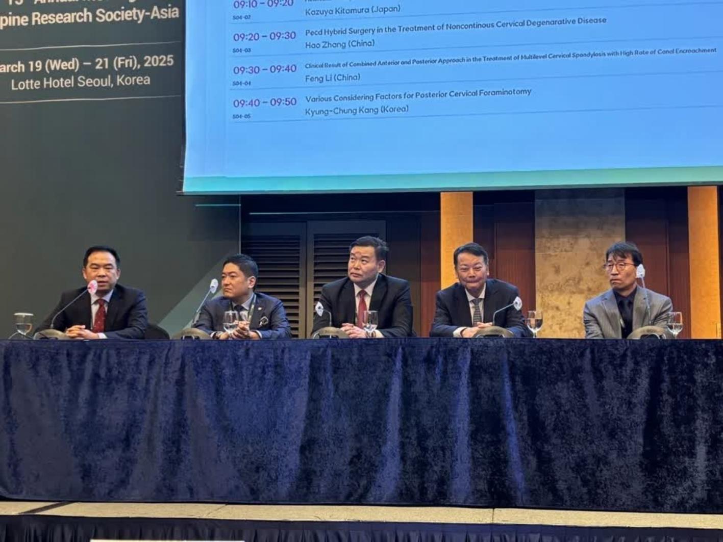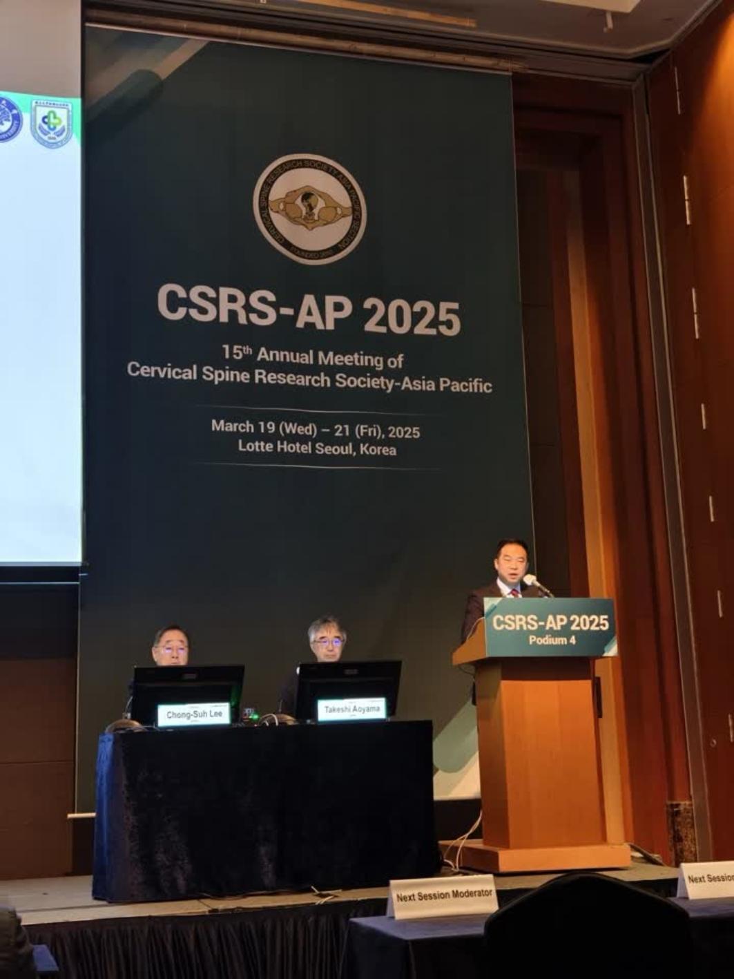 本网讯(第四附属医院)近日,备受瞩目的2025年亚太颈椎外科学会年会(CSRS-AP 2025)在韩国首尔召开,亚太地区及全球30余个国家的600余名顶尖脊柱外科专家、学者及临床医师齐聚一堂,共同探讨颈椎外科领域最新研究成果和技术突破。第四附属医院副院长曹凯受年会主席-韩国天主教大学医院骨科主任Jong-Beom Park教授邀请,进行特邀发言,并担任大会环节主持,向世界展示了中国颈椎外科的卓越成就。