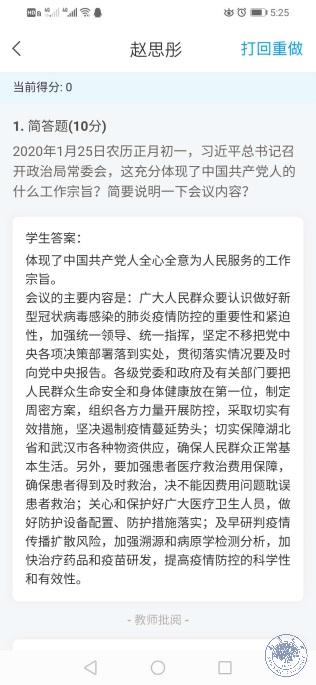 六是精心收集心得体会,确保学习效果落实到位。为检验学生学习效果,充分运用“学习通”平台的线上出题考察方式,及时跟进批阅学生提交的“作业”。