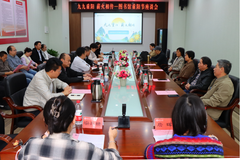 本网讯(图书馆)金秋送爽启新章,丹桂飘香迎重阳。10月29日,图书馆举办“九九重阳·薪火相传”重阳节座谈会,党总支书记曹金生、馆长邹锦良与历任馆领导代表共聚一堂、共庆佳节、共话发展。图书馆全体班子成员、部门负责人及青年馆员代表参加。