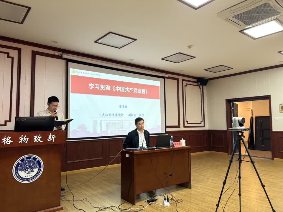 本网讯(数学与计算机学院 李鑫鑫 付轲)为了深入学习贯彻习近平新时代中国特色社会主义思想,数学与计算机学院于5月10日在理生楼举行读书班专题辅导报告会,特邀中共江西省委党校副校长、教授潘泽林作专题辅导报告。学院领导班子、各党支部支部书记和师生党员240余人参加了此次专题辅导报告.会议由党委书记易槐红主持。