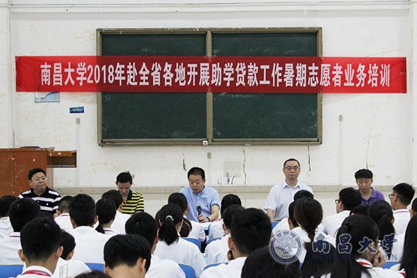 本网讯(学工处)6月9日上午,2018年南昌大学赴全省各地开展助学贷款工作暑期志愿者岗前培训会在机电楼举行。省学生资助管理中心副主任毛本其、国家开发银行江西省分行部门经理余志军等出席此次活动。