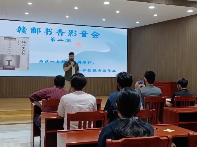 5月31日晚,图书馆“赣鄱书香影音会”第二期活动以馆藏两套珍贵古籍图书《宋杨文节公文集》《中华再造善本——诚斋先生集》为依托,以“品万里书香,观千秋文节”为主题,吸引了来自校内不同专业的学生读者,其中大部分是来自医学专业的留学生同学。