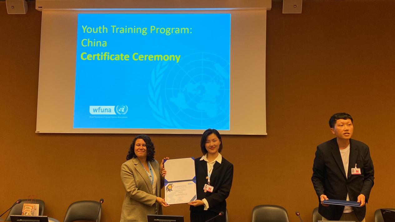 南昌大学学生李琦(中)获得“联合国日内瓦办事处实地交流项目”结业证书