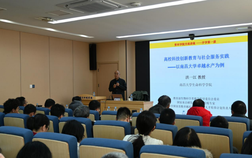 洪一江教授以《高校科技创新教育与社会服务实践-以南昌大学卓越水产为例》为题做专题报告。报告围绕“大学科技创新体系及其环境优化”“科技创新人才培养与创新创业教育”“科技创新与社会服务的互动发展”“地方综合性大学水产新农科建设实践——以南昌大学为例”等四个方面展开,充分展现了"稻渔团队"在人才培养、社会服务、乡村振兴等方面所做的探索与实践,将如何把论文写在祖国大地上做了生动的诠释。