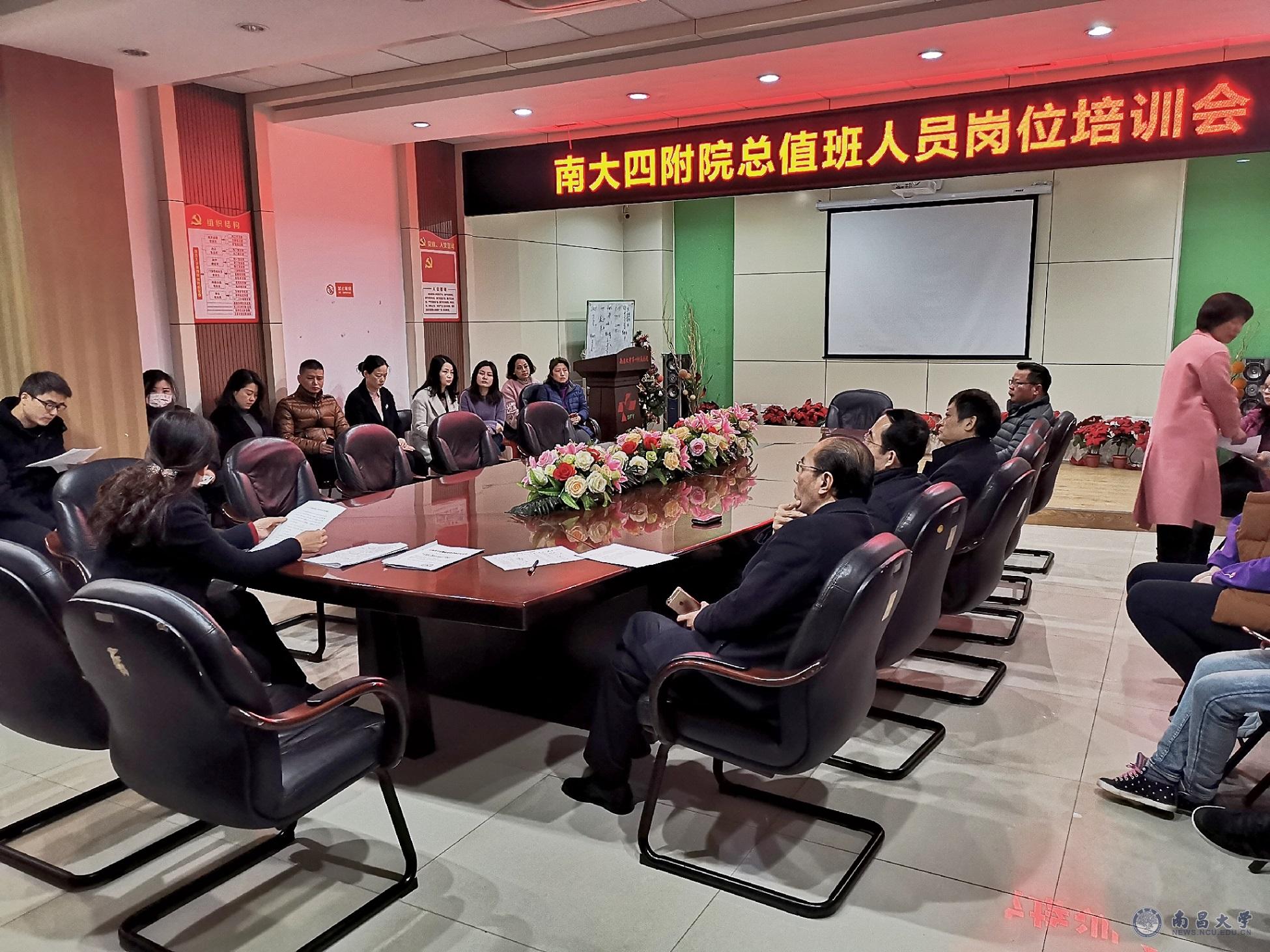 本网讯(第四附属医院)春节前夕,为加强节假日总值班人员的责任意识和医疗、行政及突发事件的应急处置能力,保障临床医疗活动的有序运转,1月30日上午,第四附属医院举办了总值班人员岗位培训会议,党委副书记、院长孙坚,副院长楼小亮、罗国荣、刘泽林等在家院领导和全体总值班人员参了会议。会议由副院长唐浪娟主持。