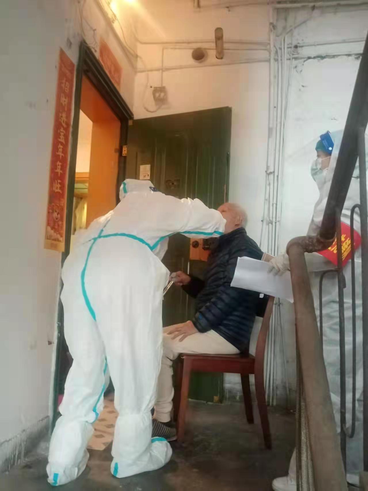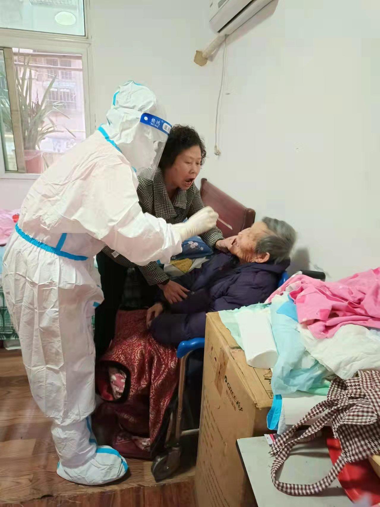 本网讯(附属眼科医院)“我都一百多岁了,反正很少出门,不做也不要紧。没想到你们还特意上来,真是辛苦你们了,谢谢啊!”家住西湖区六眼井社区五楼的万奶奶行动不便,在我院核酸采样小分队上门完成采样后,仍然久久站在门口目送她们。