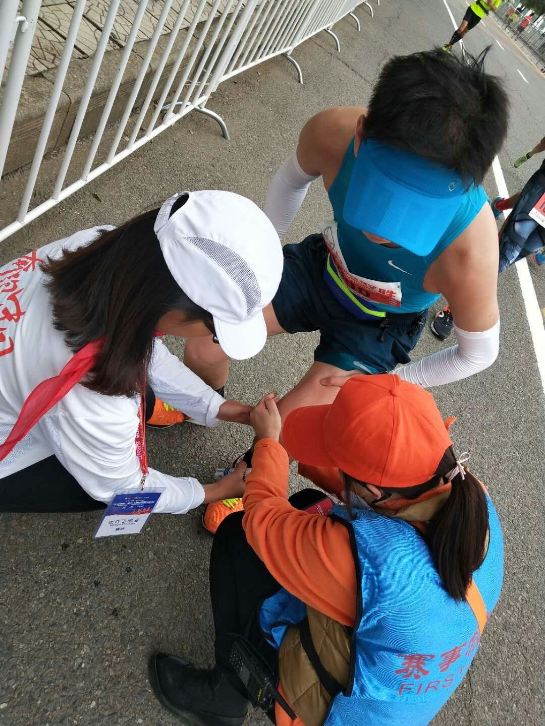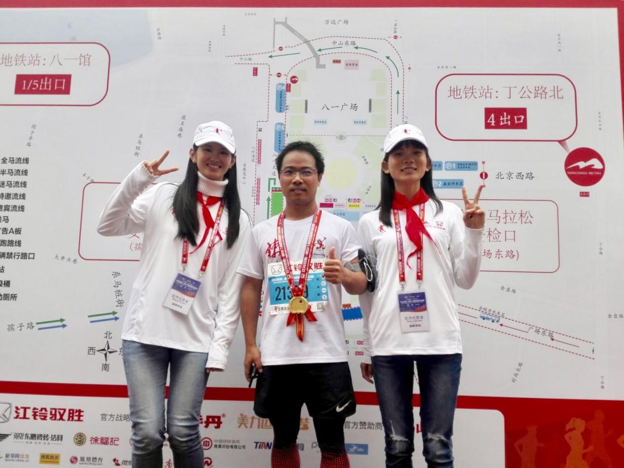 冠军属于奔跑的运动员,但感动他们的是在这场城市狂欢的背后,一群可爱志愿者的付出和坚持。南昌大学660名医疗志愿者无私奉献、坚守自己的岗位,为“赣马”增光发热。当头顶上的星辰还未完全离开夜幕,南昌大学的志愿者们便为南昌国际马拉松做起了准备,每位志愿者都到达了自己的岗位上。从赛前的培训演练到比赛中的集中精力直至赛事结束,他们分工明确、训练有素、恪尽职守;他们为运动员摇旗呐喊;他们为奔跑中的每一位递上水;他们为每一位劳累的运动员做医疗上的放松;他们为运动员提供医疗帮助。气球碰撞,那是对运动员的鼓励;彩旗飞扬,那是对运动员的肯定。而团省委副书记伍复康、团市委书记盛炜看望志愿者,并为志愿者点赞,则是对志愿者工作的肯定。