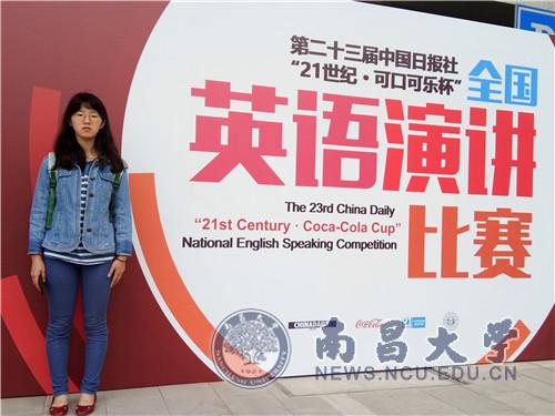 本网讯(通讯员叶兆青)4月12至4月15日,第23届“21世纪杯”全国英语演讲比赛总决赛在杭州师范大学举行,我校英语专业2016级学生蔡丹婷荣获一等奖。
