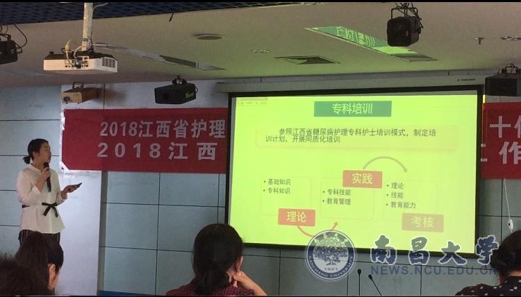本网讯(第四附属医院)5月6日,江西省护理学会在全省范围内开展“专科护理助力基层”十佳案例评选活动,评选现场,第四附属医院内分泌科护士长程薇基于专科内容、项目难度、帮扶亮点、实施效果、社会影响等五个方面,介绍第四附属医院2017年在专科护理助力基层的工作。并从26名参赛选手中脱颖而出,荣获2018江西省护理学会“专科护理助力基层”十佳案例奖。