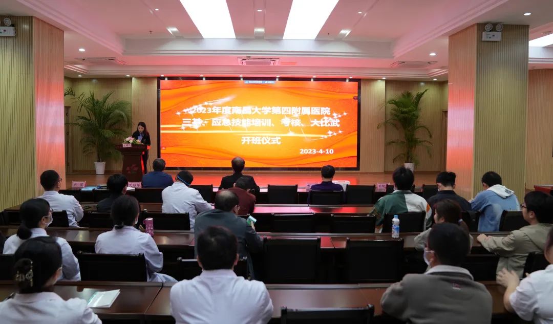 本网讯(第四附属医院)4月10日,四附院2023年度三基、应急技能培训正式开班,全院医护人员及规培生、住院医师约700人分别以线下和线上的形式参会。