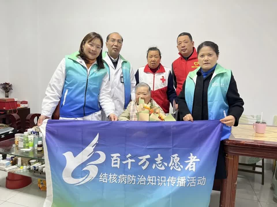 志愿服务队还将结核病防治知识带进了家庭,看望了家住广南社区的李奶奶,为她讲解结核病防治相关知识。全院职工也通过线上“结核病核心知识”有奖知识问答参与到了此次活动当中。